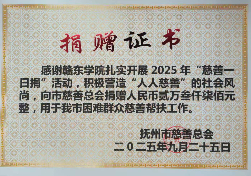 为弘扬中华民族乐善好施、守望相助的传统美德,积极响应抚州市2025年“慈善一日捐”活动号召,近日,赣东学院工会精心组织、广泛动员,在全校范围内成功开展了以“慈心博爱一日捐,善行抚州暖万家”为主题的慈善募捐活动。