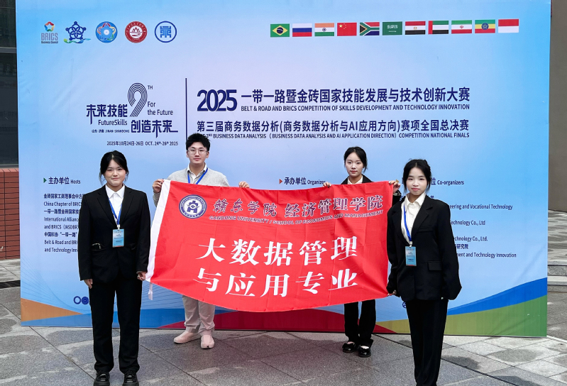 10月26日,“2025一带一路暨金砖大赛之第三届商务数据分析(商务数据分析与AI应用方向)赛项全国总决赛”在山东济南举办,我校经管学院大数据管理与应用专业学生团队荣获本科组全国一等奖和大赛“最佳组织奖”。