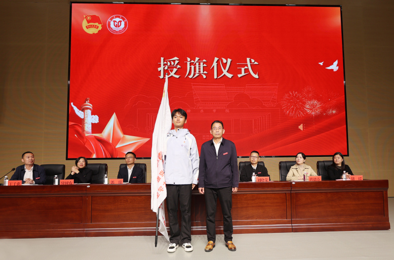 现场还举行了授旗仪式。旗帜传递间,既承载着学校对青年学子的信任与期望,也标志着全体学员肩负起引领青年、服务同学的责任使命。