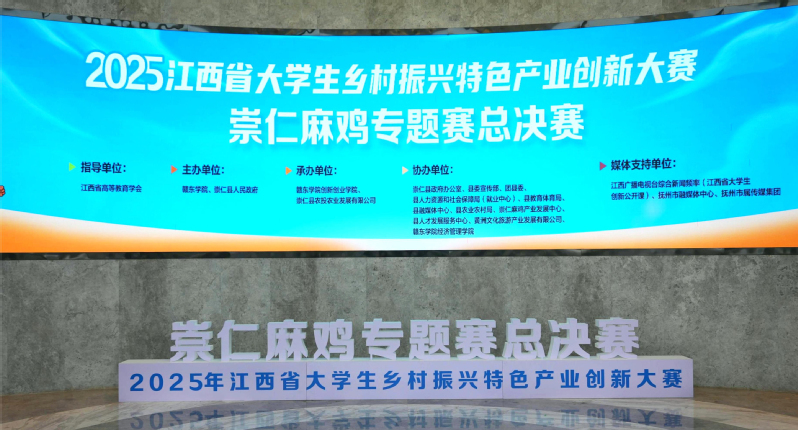 由江西省高等教育学会指导,赣东学院与崇仁县人民政府共同主办的江西省大学生乡村振兴特色产业创新大赛崇仁麻鸡专题赛,于11月19日在崇仁县圆满收官。在激烈角逐的总决赛中,赣东学院团队的《贡鸡红脉·智销兴农——崇仁麻鸡县域公共品牌赋能项目》项目拔得头筹,荣获最高分。