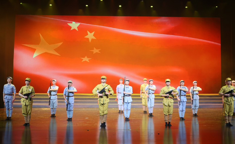 《人民共和国从这里走来》是由赣南师范大学创作并演出的教育部“高校原创文化精品推广行动计划”项目。剧目聚焦中国共产党从“定都瑞金”到“战略转移”的辉煌革命历程,综合运用音乐、舞蹈、戏剧等艺术形式,并融入赣南采茶戏、客家灯彩等非物质文化遗产元素,结合现代声光电舞台技术,生动再现了苏区时期中国共产党建立红色政权、一心为民的峥嵘岁月,深刻诠释了坚定信念、求真务实、无私奉献的苏区精神。