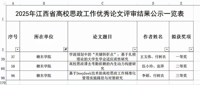 近日,2025年江西省高校思政工作优秀论文评审结果揭晓,赣东学院在此次评选中成绩亮眼。由王玉伟、付树农老师撰写的《学涯规划中的“关键转折点”:基于扎根理论的大学生学业适应质性研究》获一等奖,彰显了学校在思想政治教育工作研究领域的创新实力和深厚潜力。