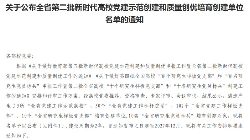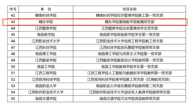 近日,中共江西省委教育工委印发《关于公布全省第二批新时代高校党建示范创建和质量创优培育创建单位名单的通知》(赣教党字〔2026〕14号),赣东学院基础教学部直属党支部成功入选“全省党建工作样板支部”培育创建单位。