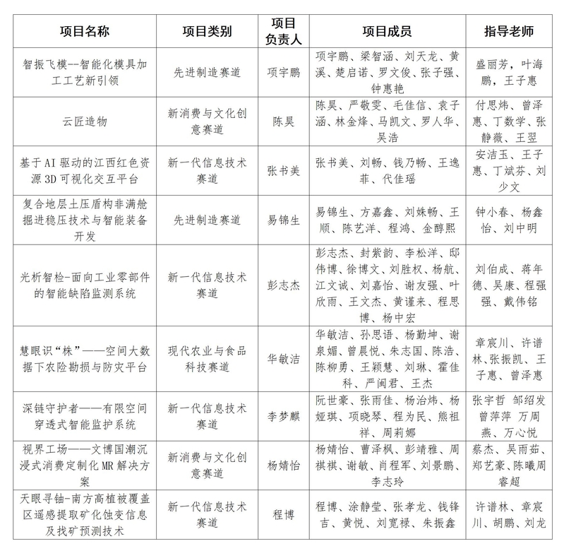 根据《关于举办第十五届“挑战杯”江西省大学生创业计划竞赛的预通知》要求,校团委组织赣东学院第十五届“挑战杯”江西省大学生创业计划竞赛校内选拔赛,经学生自主申报、学院初赛、校级决赛、答辩、专家评审等环节,拟推报以下9个项目参加省赛,现予以公示: