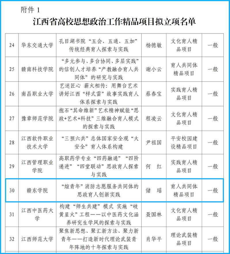 近日,江西省教育厅下发了《关于江西省高校思想政治工作精品项目、辅导员名师工作室、网络育人名师评选结果的公示》,赣东学院思政精品项目成功入选2025年江西省高校思想政治工作精品项目建设拟立项名单。